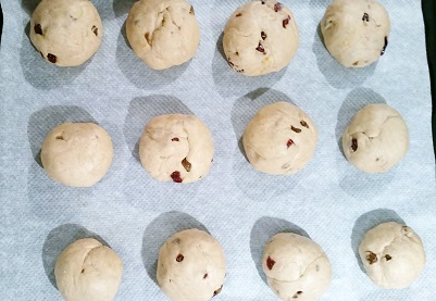 Divisez la en 12 parts égales et formez des petits pains ronds. Déposez les bien espacés sur une plaque recouverte de papier sulfurisé. Couvrez d’un linge humide et laissez monter encore 35-40 minutes jusqu’à ce que les pains aient doublé de volume.