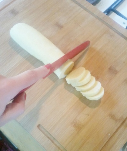 Sortez la pâte du film et découpez la en morceaux d’un centimètre d’épaisseur.