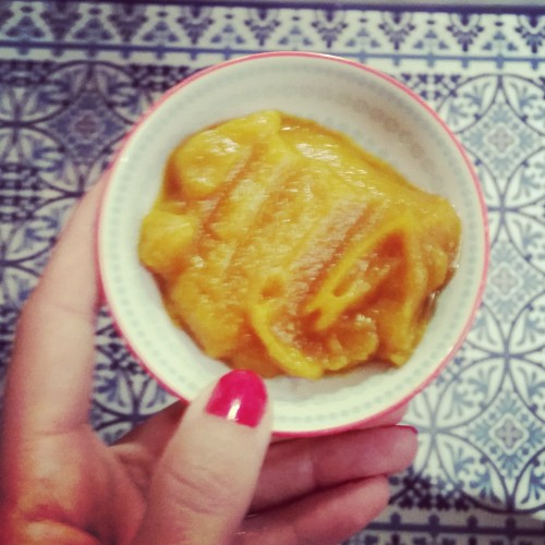 Passez cette purée au tamis pour obtenir une purée très fine, ajoutez les épices et le miel. (pour les épices, je vous laisse doser à votre convenance mais je mets 2 fois plus de gingembre que le reste des épices)