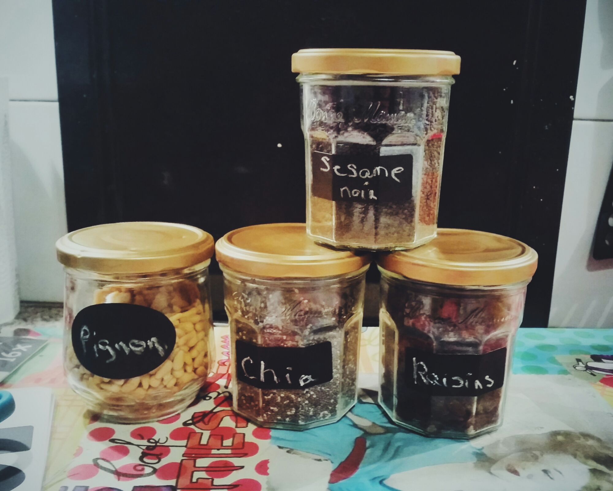 J’aime récupérer les pots de toutes tailles, que ce soit ceux de confiture, de cornichons, de produits apéritifs etc pour stocker ce genre de produit.