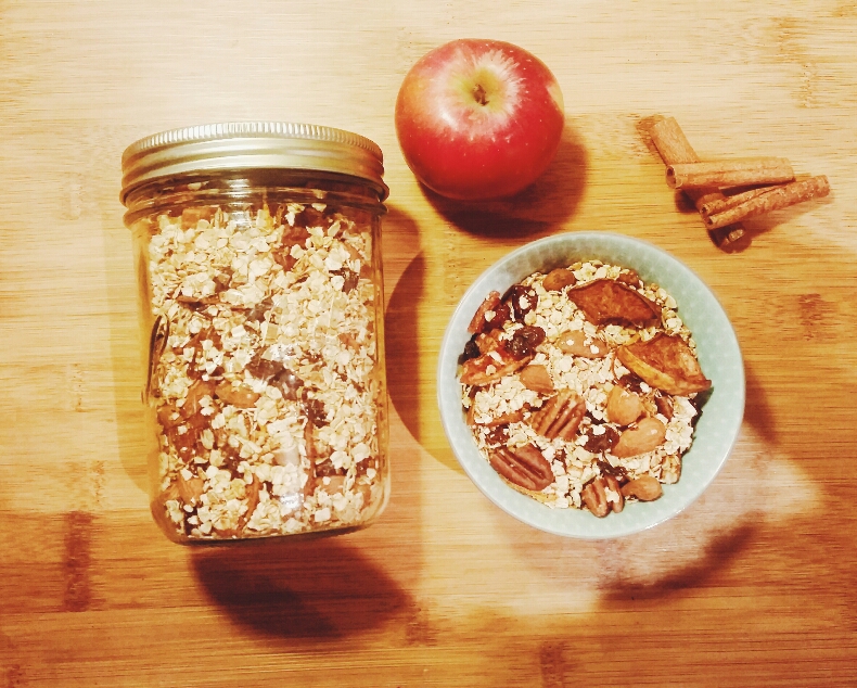 Pour l’hiver j’avais envie de faire des céréales plus gourmandes et réconfortantes, le granola est donc parfait (la différence entre muesli et granola est la cuisson pour le second).