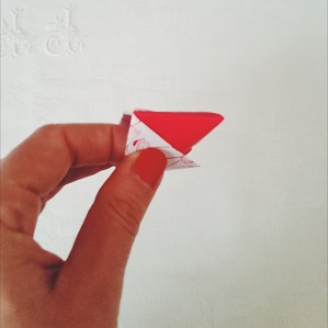 5. Plier au centre les triangles obtenus pour les rabattre vers le bas