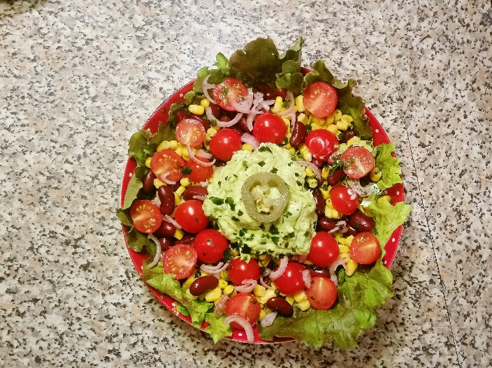 Salade Tex Mex végétarienne, sauce à l’avocat