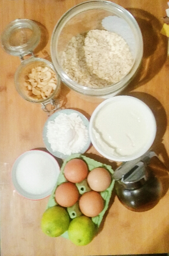 Gateau au fromage blanc, citron vert et flocons d’avoine du petit déjeuner