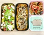 J’ai adopté le format bento depuis des années car le format est pratique pour séparer entrée/plat/dessert, pour le transport, le format est pile ce qui correspond à mes besoins nutritionnels et … c’est joli !